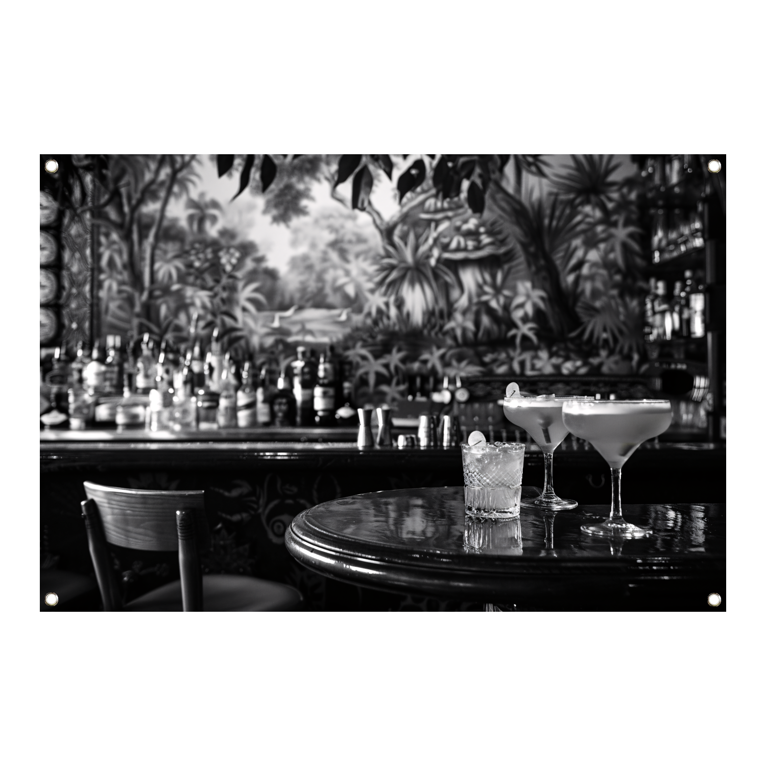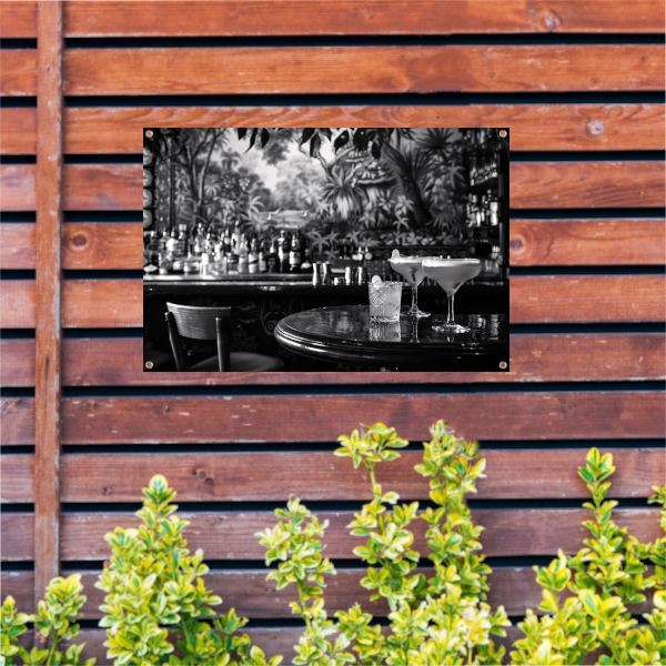 Elegante Zwart-Wit Cocktailbar Momentopname tuinposter