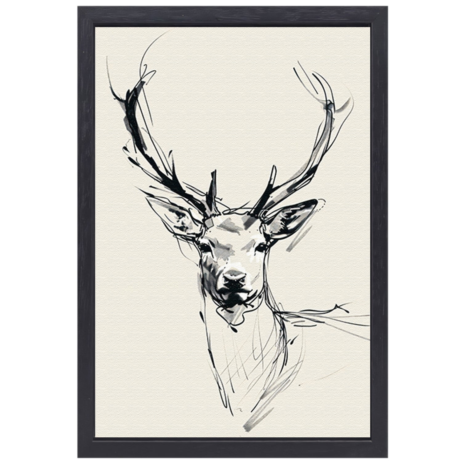 Elegante zwart-wit lijntekening van een hert canvas met baklijst