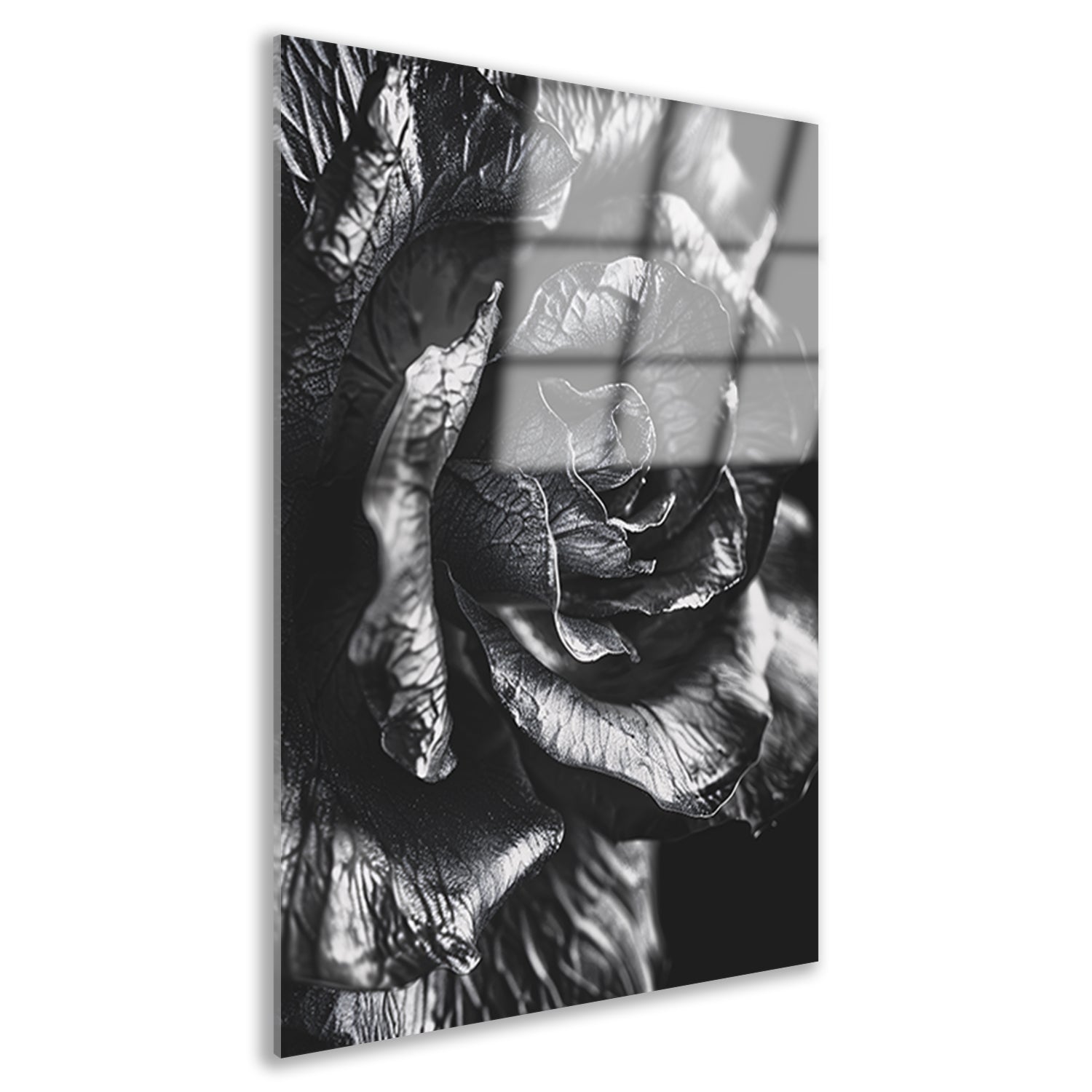 Elegante zwart-wit macrofotografie van een roos acrylglas
