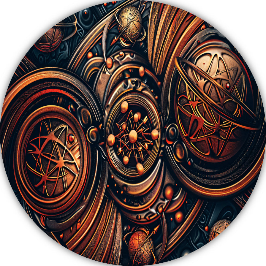 Esoterische symbolen in goud en zwart aluminium muurcirkel
