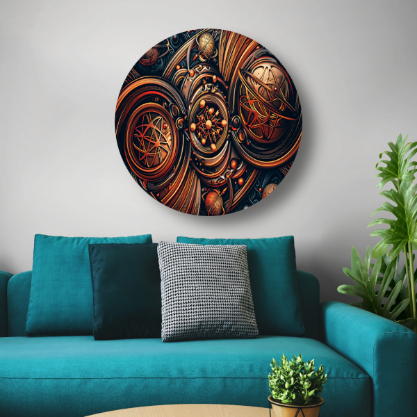 Geef je interieur een spirituele touch met deze esoterische symbolen in goud en zwart aluminium muurcirkel. Bestel hem vandaag nog en geniet van de mystieke uitstraling die hij aan je ruimte zal geven.