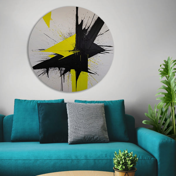 Explosie van Contrast in Geel en Zwart aluminium muurcirkel