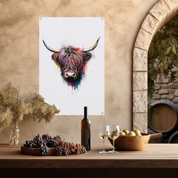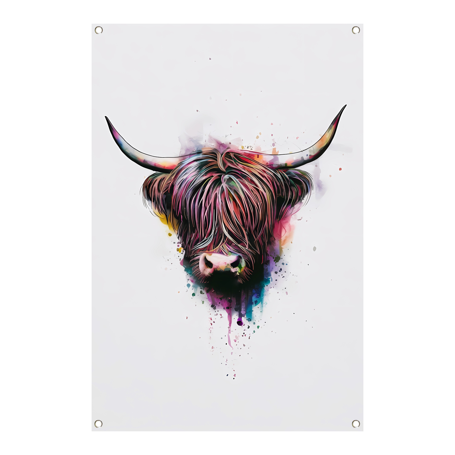 Explosie van Kleur: Abstracte Schotse hooglander tuinposter