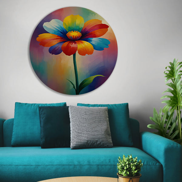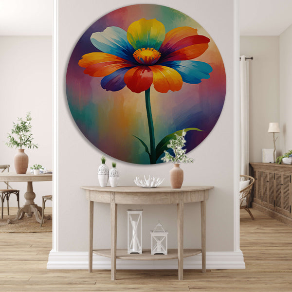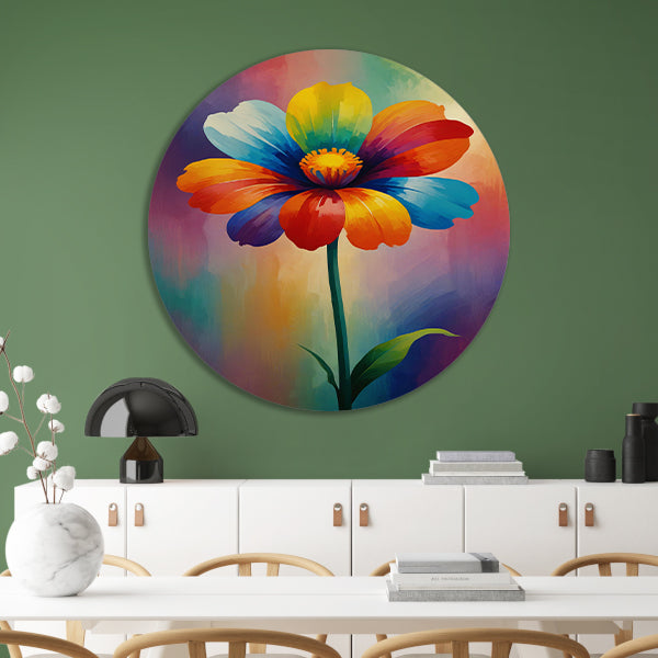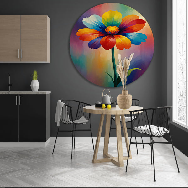 Explosie van kleur in abstracte bloem aluminium muurcirkel