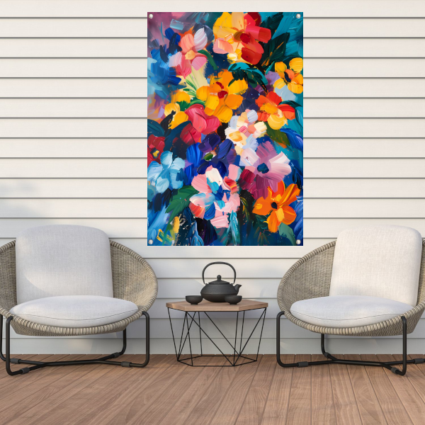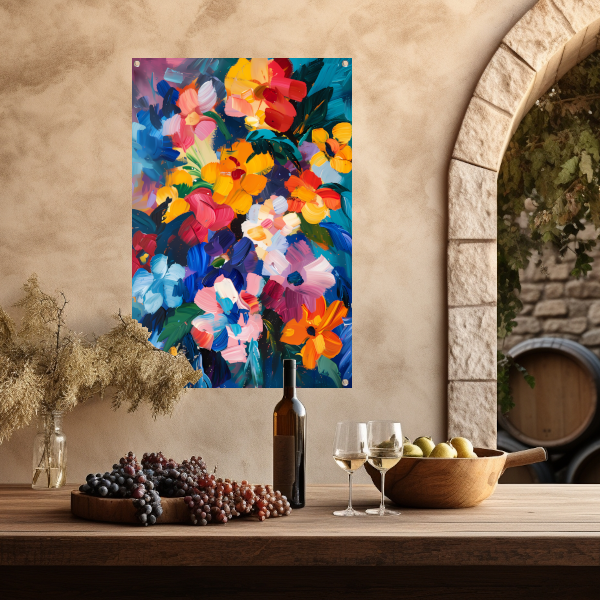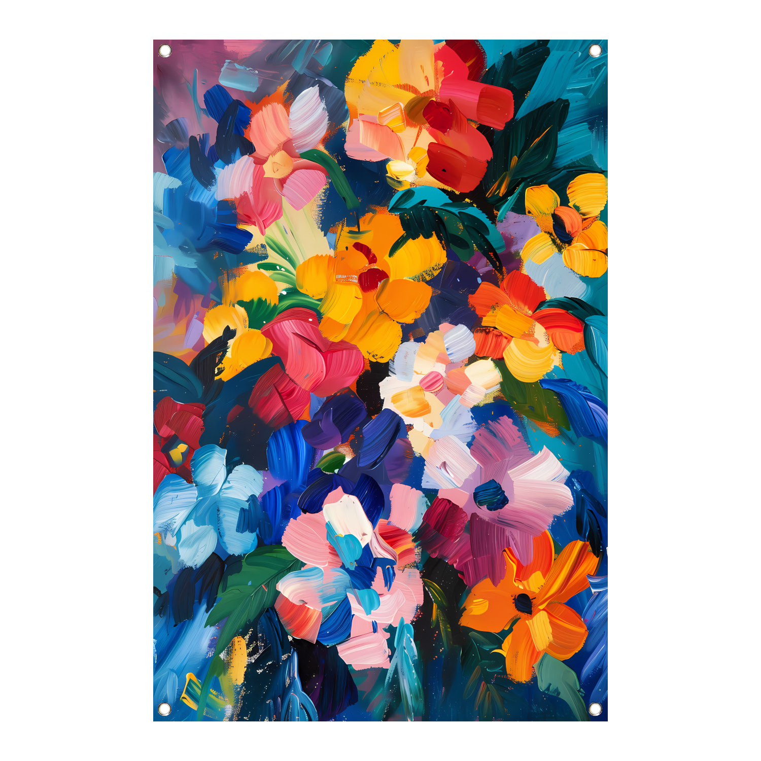 Explosie van kleuren in abstract bloemenschilderij tuinposter