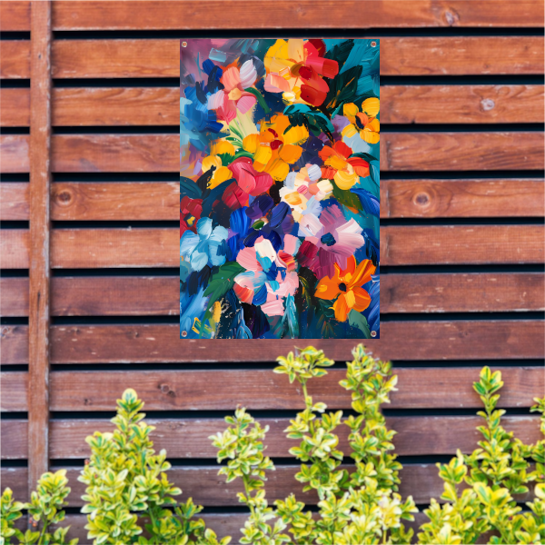 Onze tuinposters zijn UV- en waterbestendig, waardoor ze bestand zijn tegen zon en regen en hun kleuren langdurig mooi blijven. Alle tuinposters van De Muurdecoratie zijn voorzien van ringen in de hoeken, zodat je ze eenvoudig kunt ophangen. Let op: onze tuinposters worden niet met ophangsysteem geleverd.