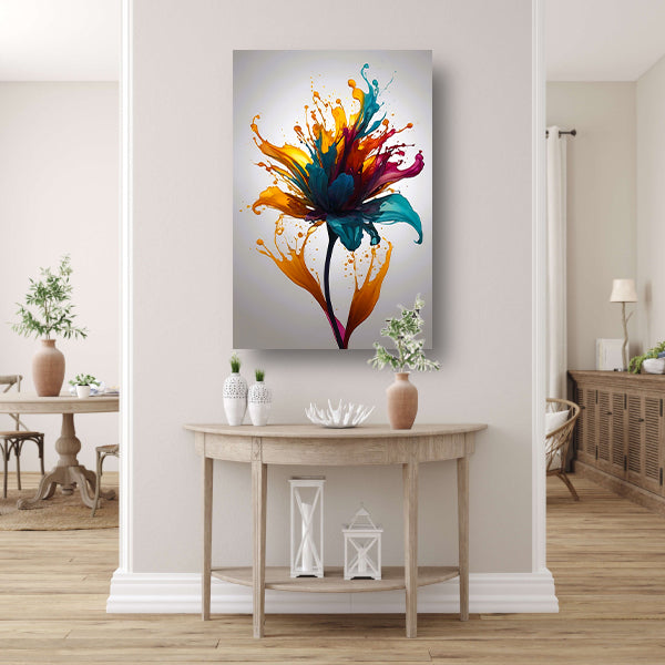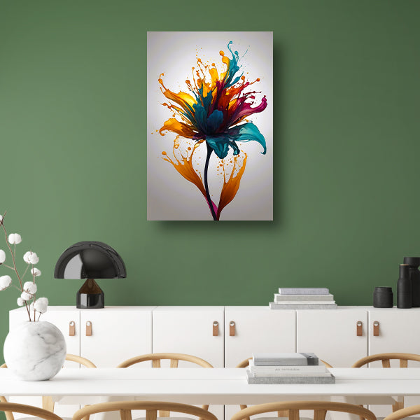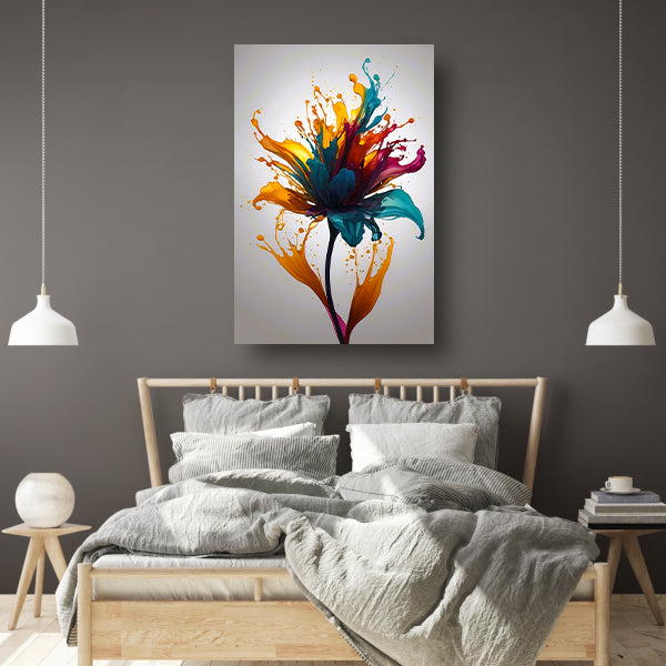 Explosie van Kleurrijke Abstracte Bloem canvas met baklijst
