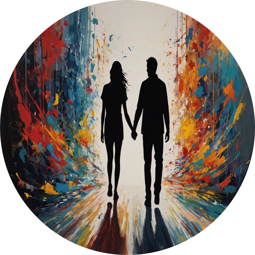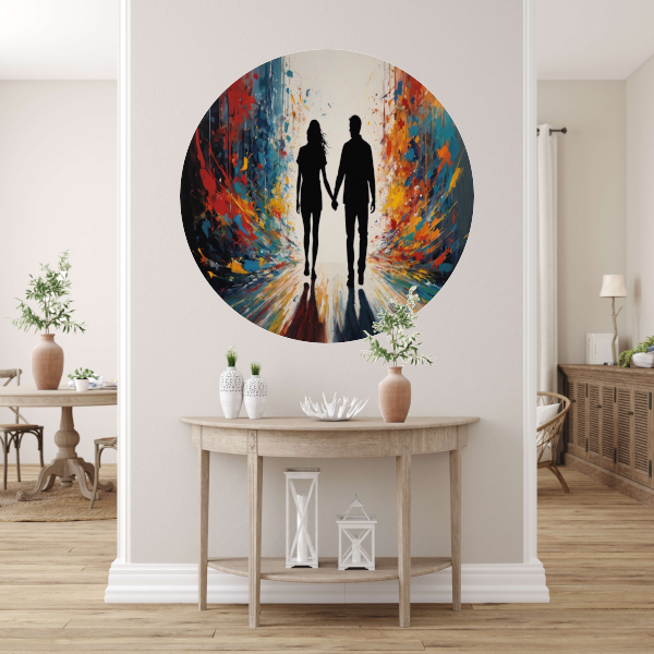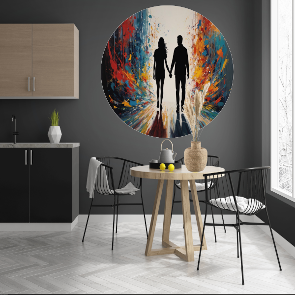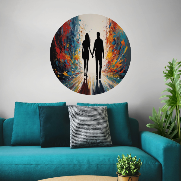 Explosieve Kleuren Dans met Liefdespaar aluminium muurcirkel