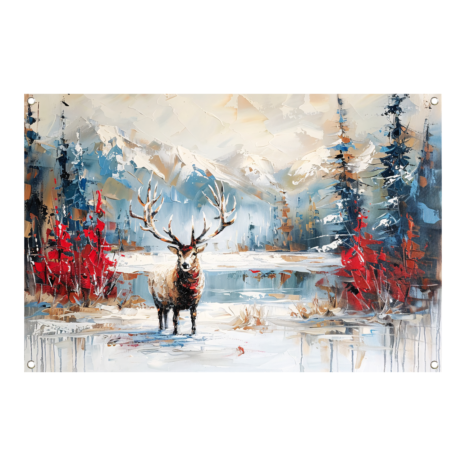 Expressief hert in winterlandschap schilderij tuinposter