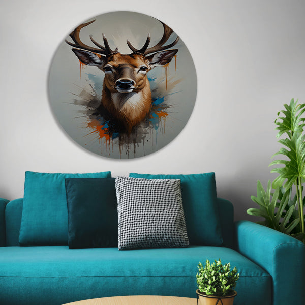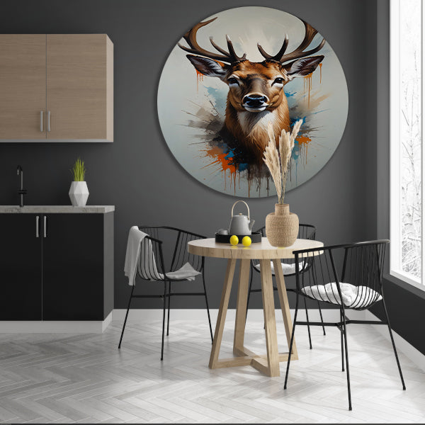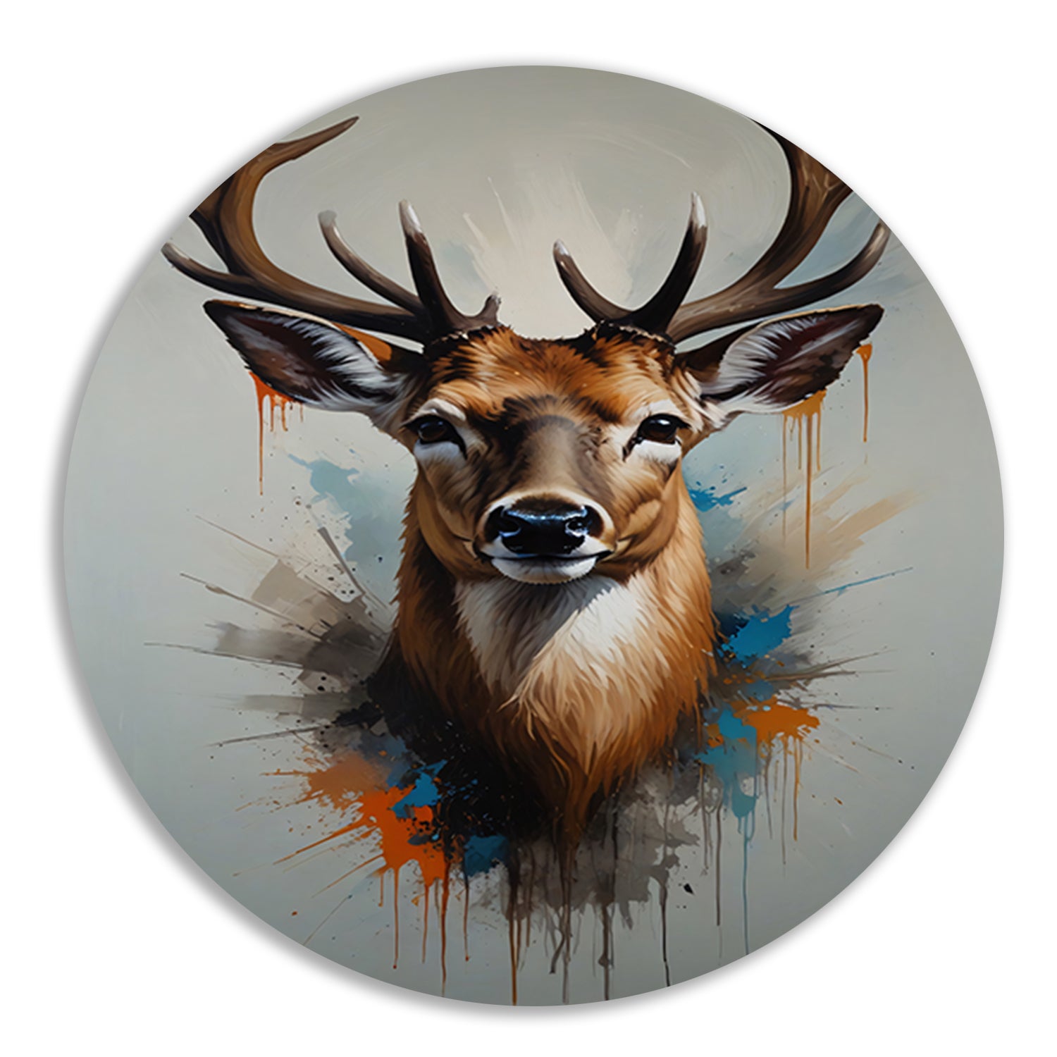 Expressief Hertenportret met Kleurrijke Spatten aluminium muurcirkel