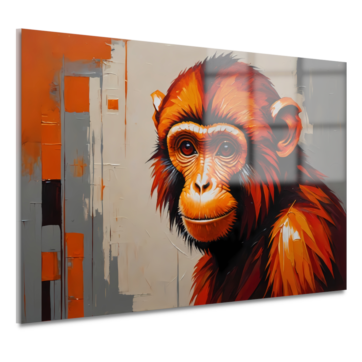 Expressieve aap in oranje en rood acrylglas