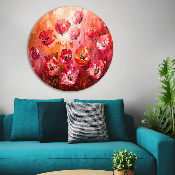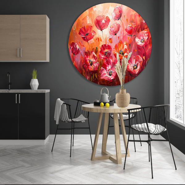 Expressieve abstracte bloemen in kleurrijk veld aluminium muurcirkel