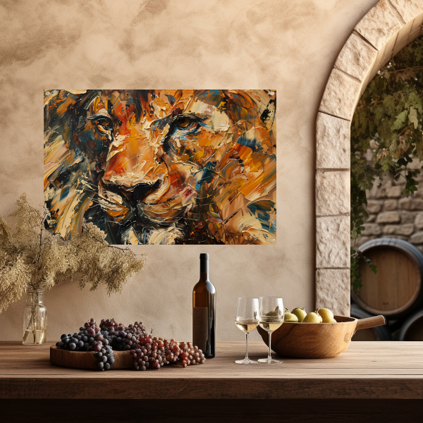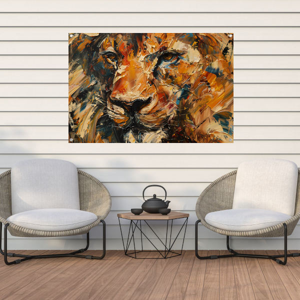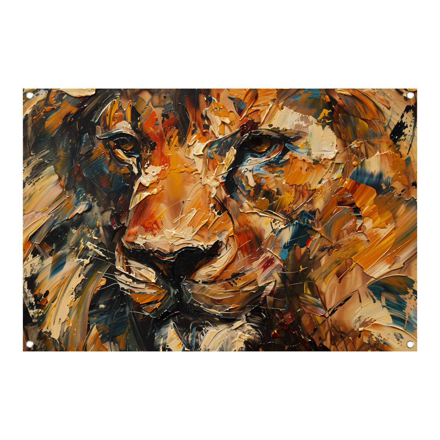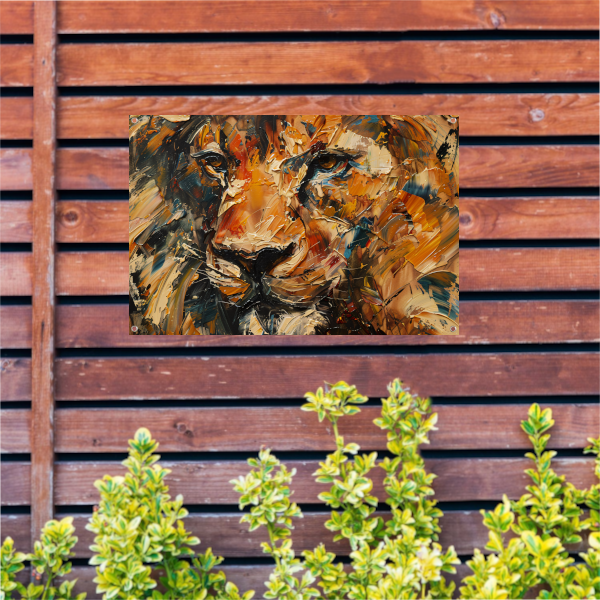 Expressieve Abstracte Leeuwenkop met Kleurrijke Streken tuinposter