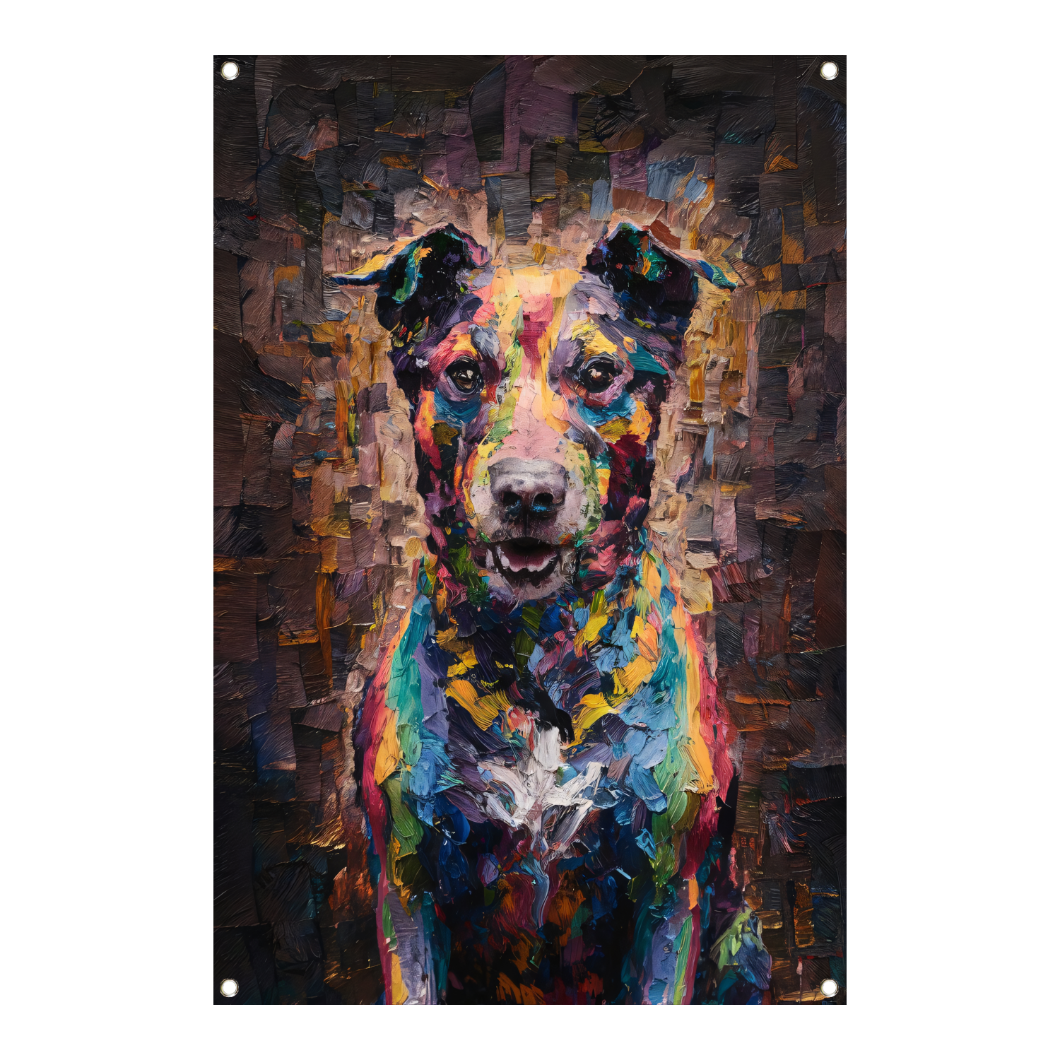 Expressieve kleurrijke hond in moderne kunst tuinposter