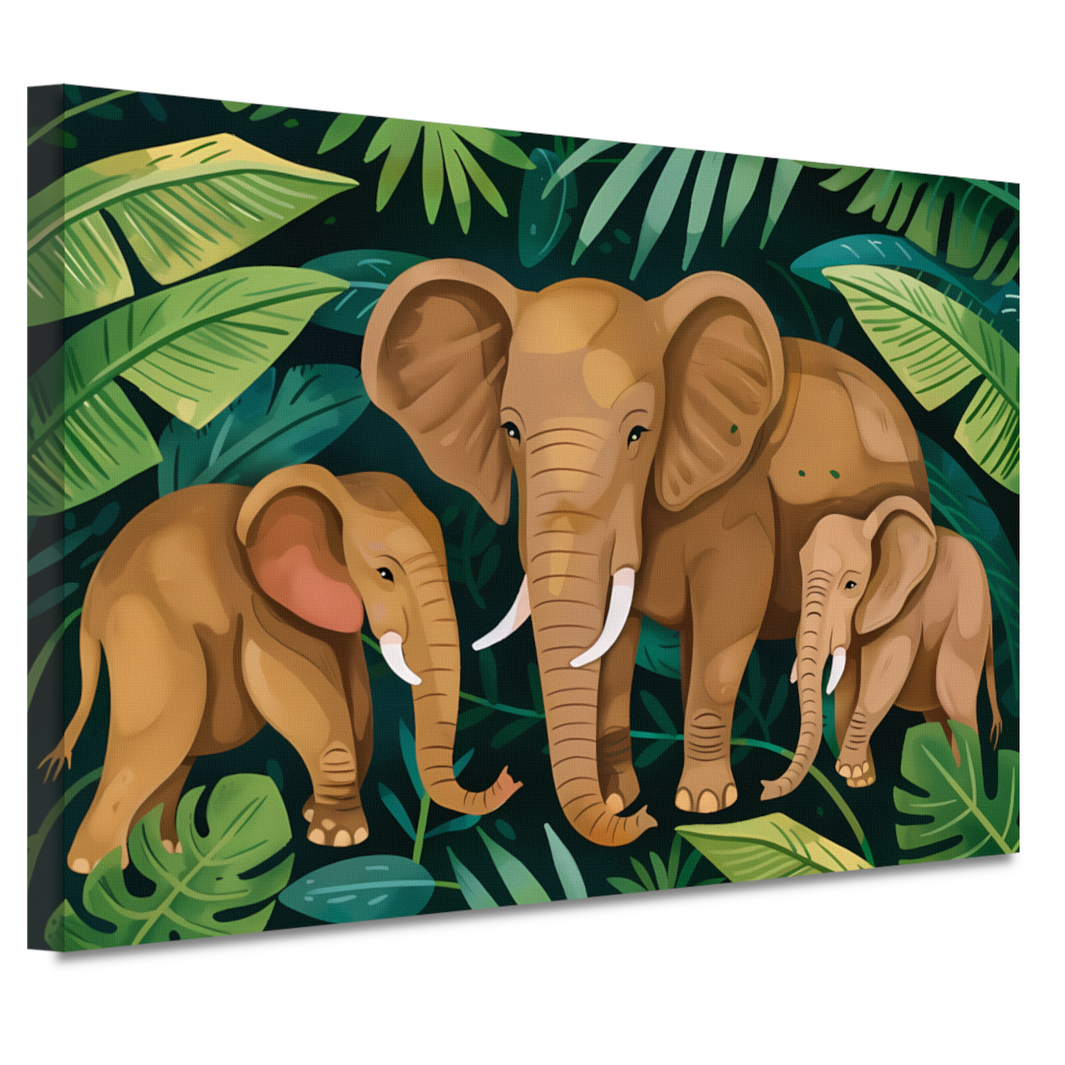 Familie Olifanten in het Groene Tropisch Woud canvas