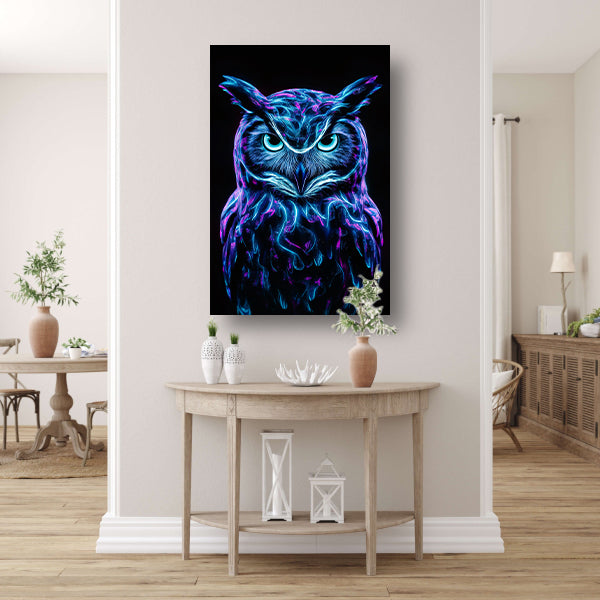 Fluorescerende futuristische uil in levendige kleuren acrylglas