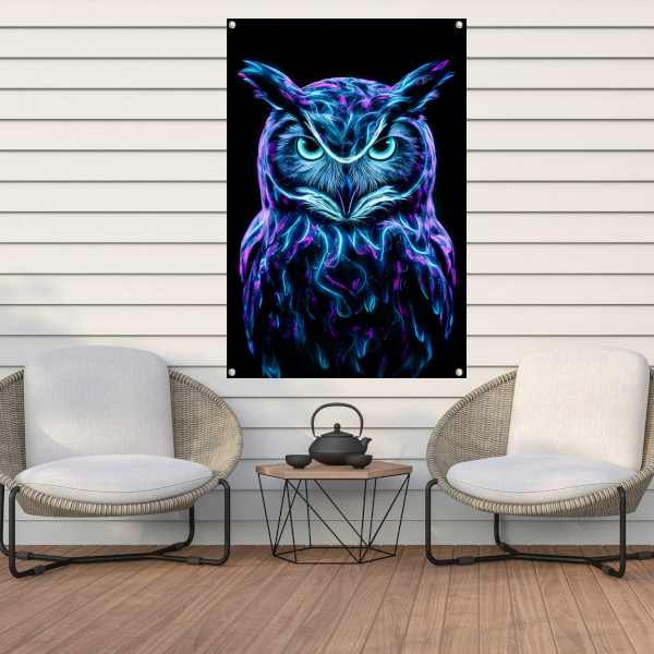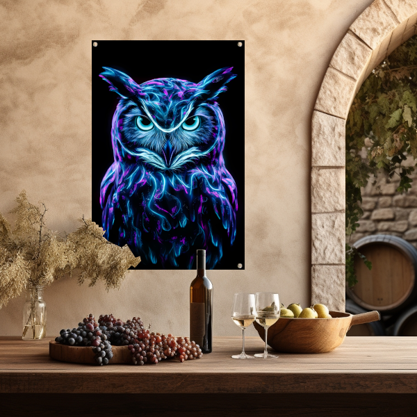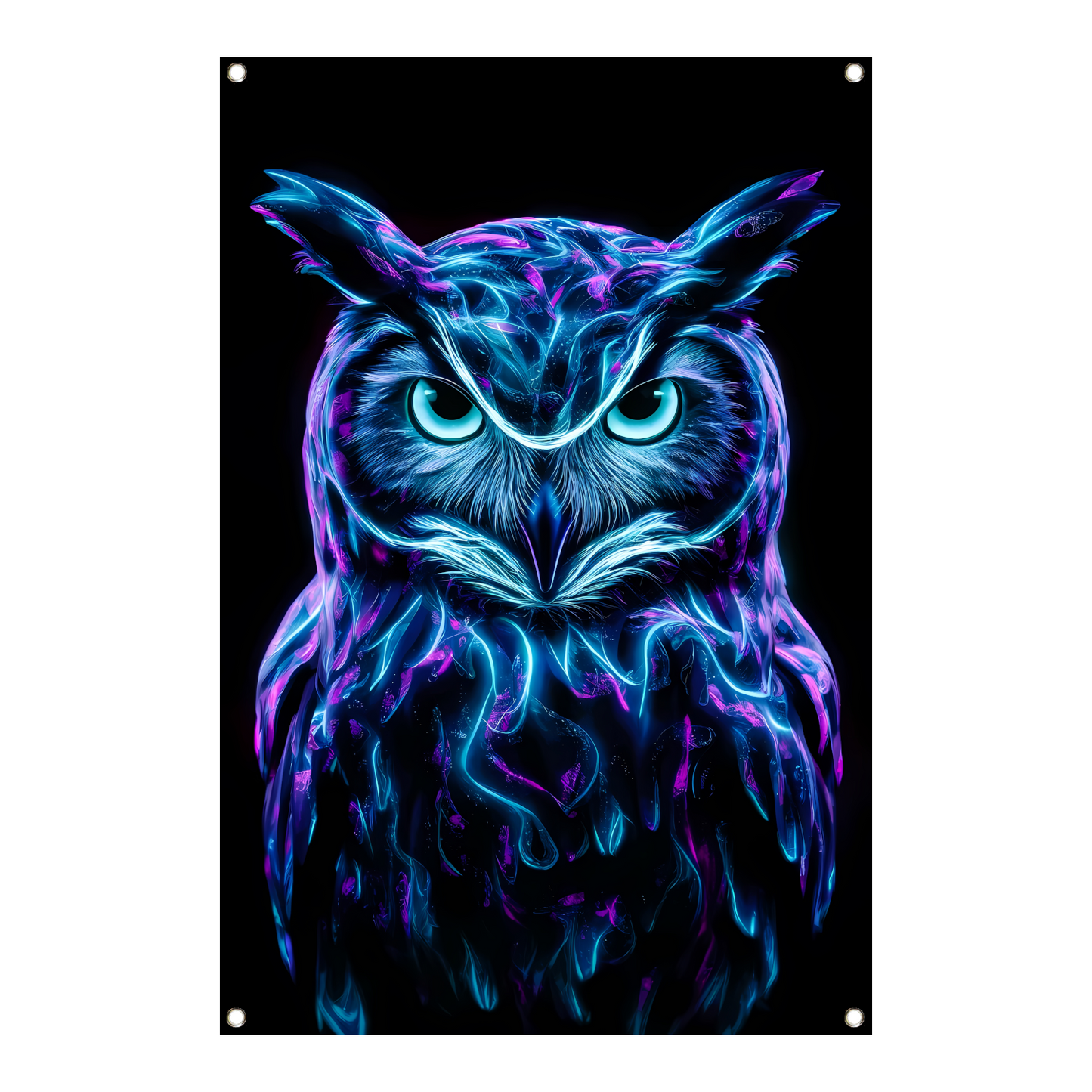 Fluorescerende futuristische uil in levendige kleuren tuinposter