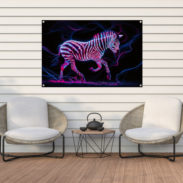 Fluorescerende zebra in neonkleuren kunstwerk tuinposter