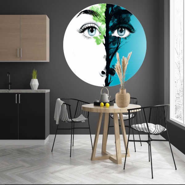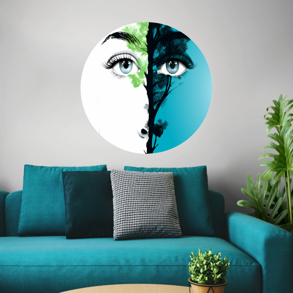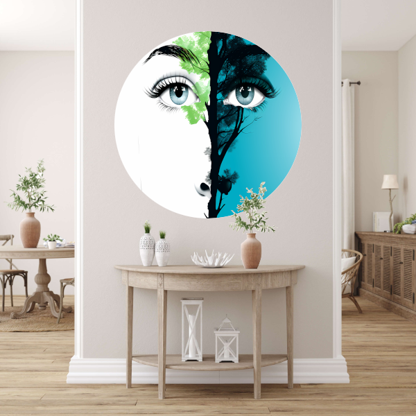 De afbeelding op de muurcirkel toont een harmonieuze samensmelting van menselijke elementen en natuurlijke landschappen, waardoor een unieke en inspirerende sfeer wordt gecreëerd. De levendige kleuren en scherpe details zorgen ervoor dat deze muurcirkel echt tot leven komt en de ruimte transformeert waarin hij wordt opgehangen.