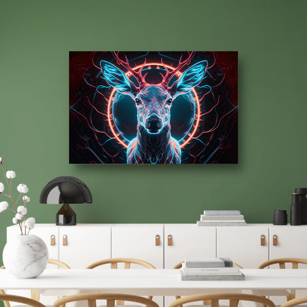 Futuristisch hert in levendige neonkleuren canvas met baklijst
