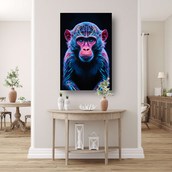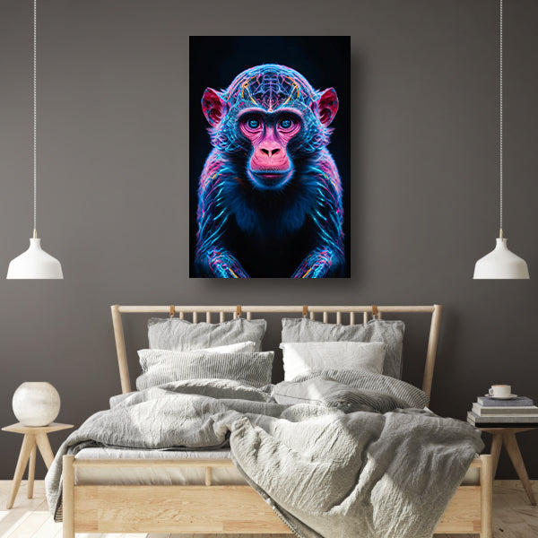 Futuristisch neonportret van een kleurrijke aap acrylglas