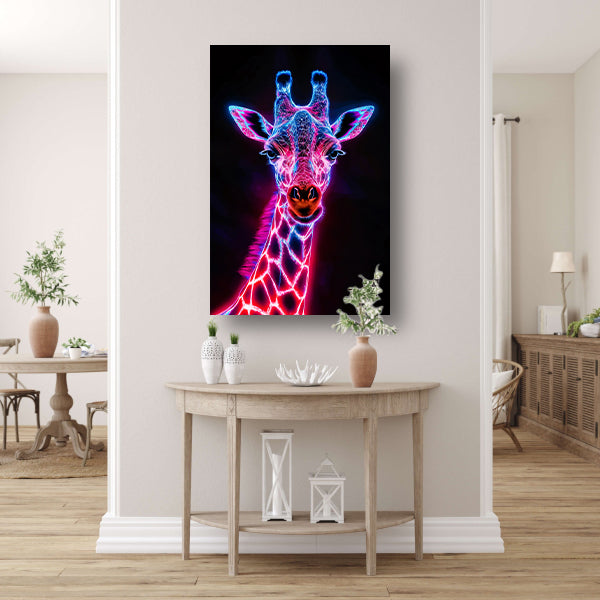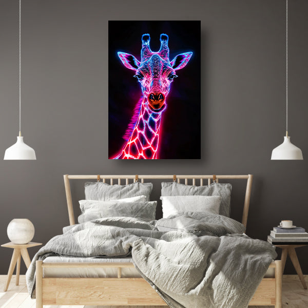 Futuristische giraffe in neonkleuren kunstwerk canvas met baklijst