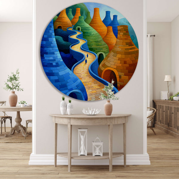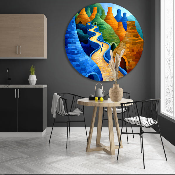 Breng de toekomst naar jouw huis met deze prachtige futuristische stad muurcirkel en geniet van een opvallend en inspirerend kunstwerk dat elke ruimte zal verfraaien. Bestel nu en geef jouw interieur een moderne upgrade met dit unieke en kleurrijke kunstwerk.