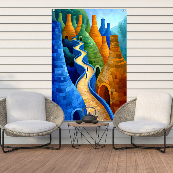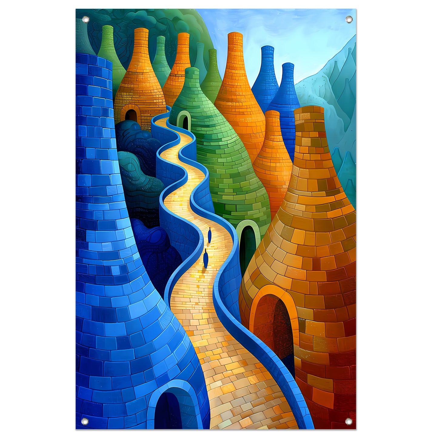 Futuristische stad met Kleurrijk gebouwen tuinposter