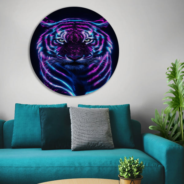Futuristische tijger met bioluminescente kleuren forex muurcirkel