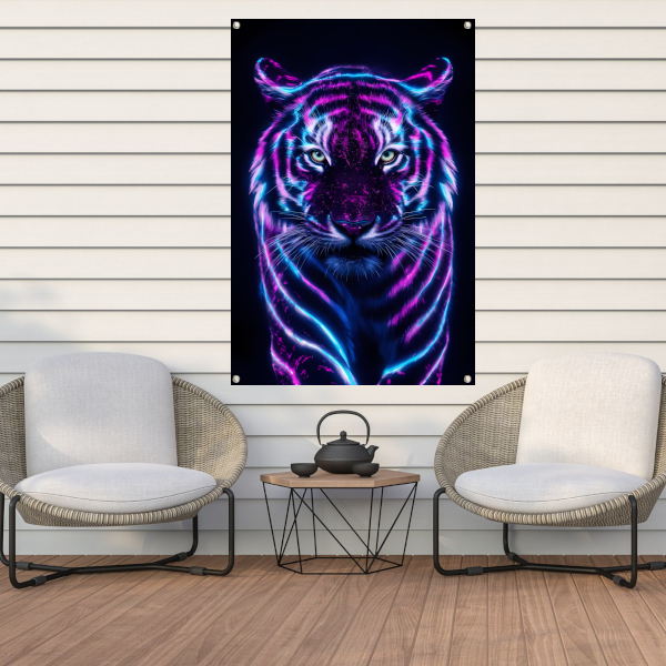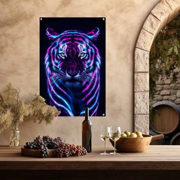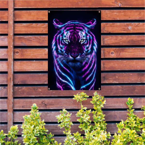 Futuristische tijger met bioluminescente kleuren tuinposter