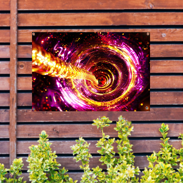 Futuristische tunnel met kleurrijke lichtsporen tuinposter