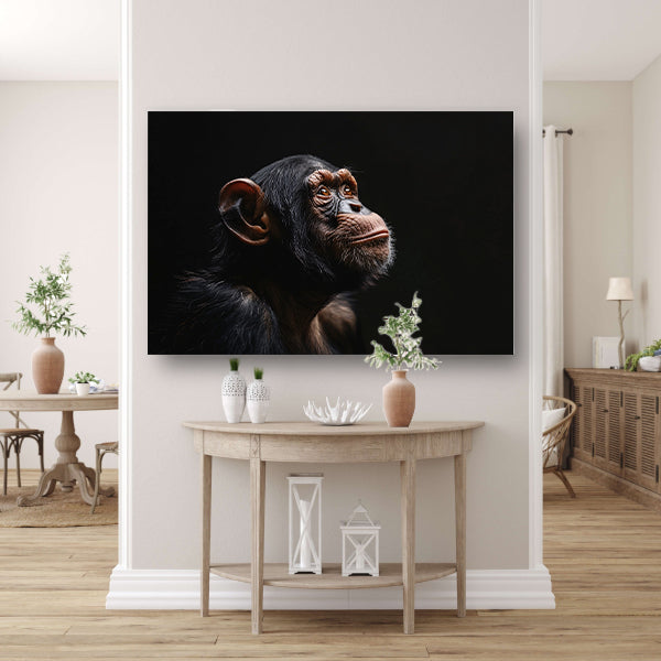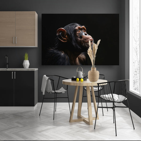 Gedetailleerd chimpanseeportret met donkere achtergrond acrylglas