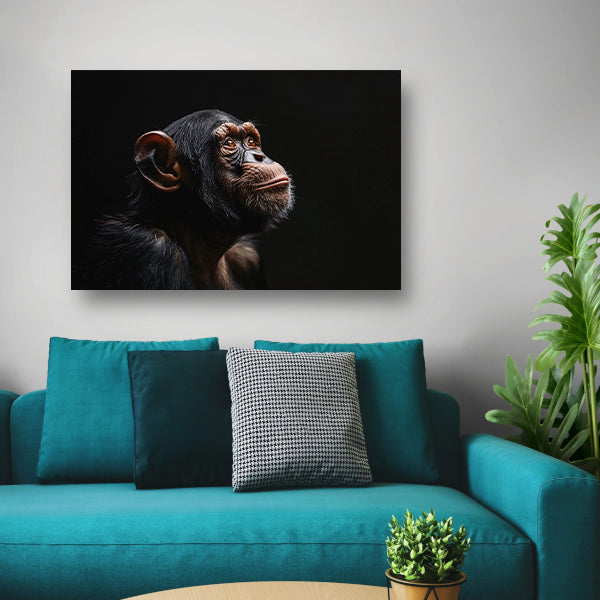 Gedetailleerd chimpanseeportret met donkere achtergrondposter