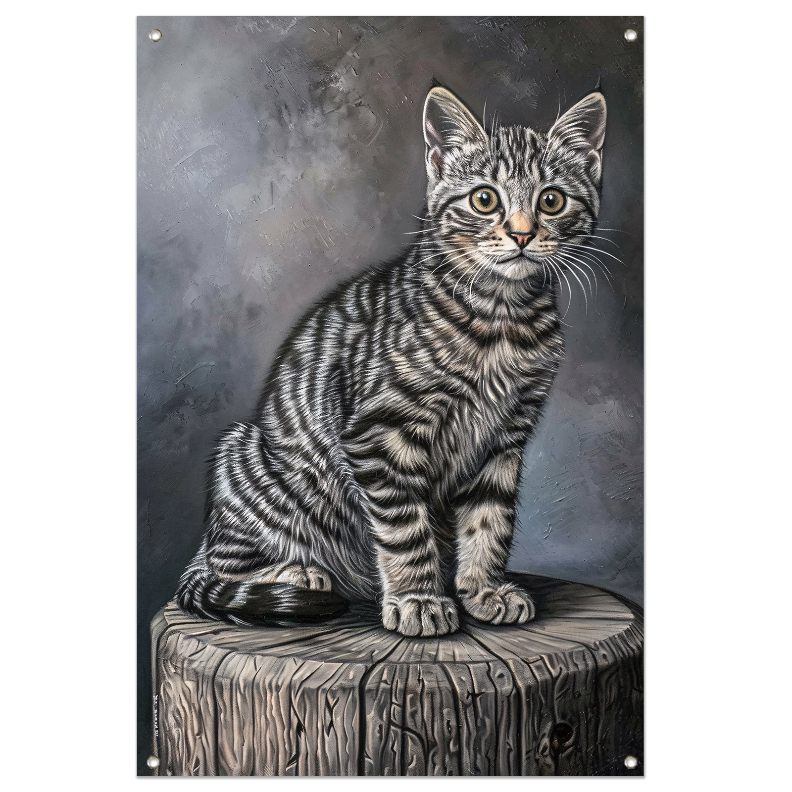 Gedetailleerd realistisch schilderij van een kat tuinposter