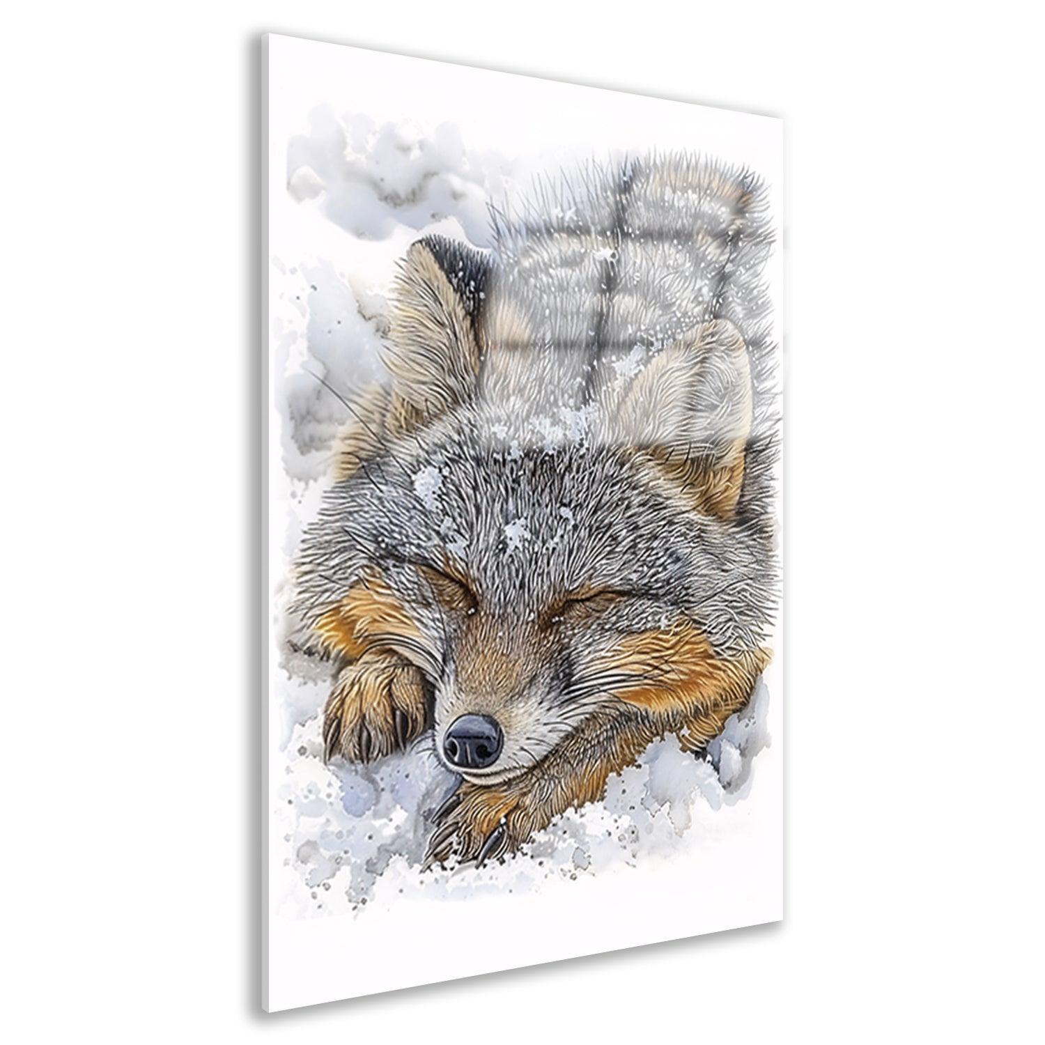 Gedetailleerd schilderij van een slapende vos acrylglas