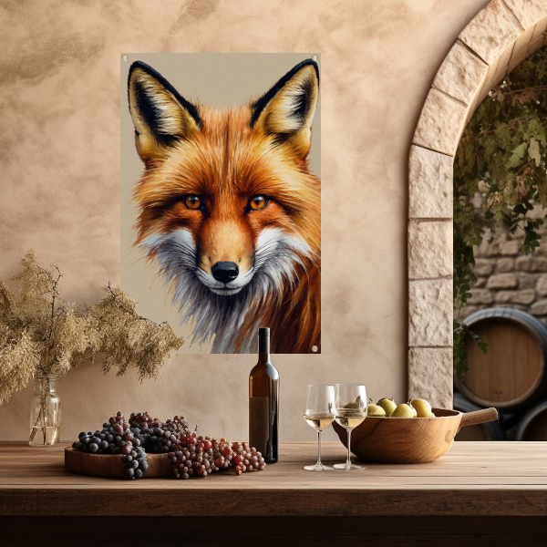 Gedetailleerd schilderij van een vos tuinposter
