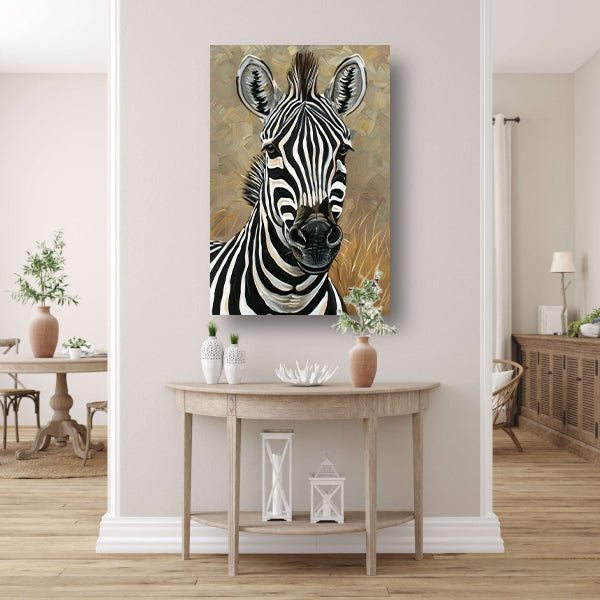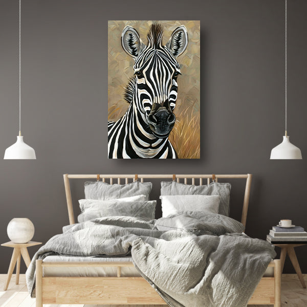 Gedetailleerd zebra schilderij in zwart-wit canvas