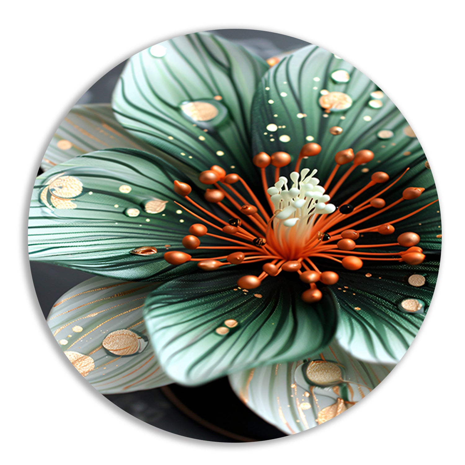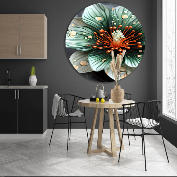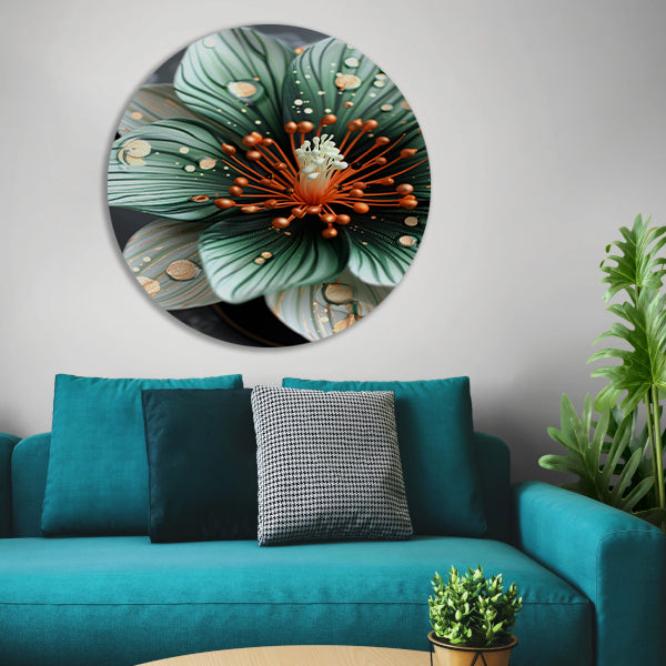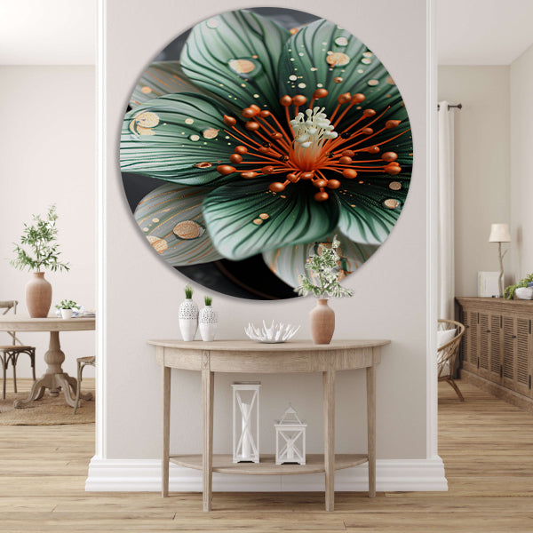 Gedetailleerde bloem in groen en oranje aluminium muurcirkel