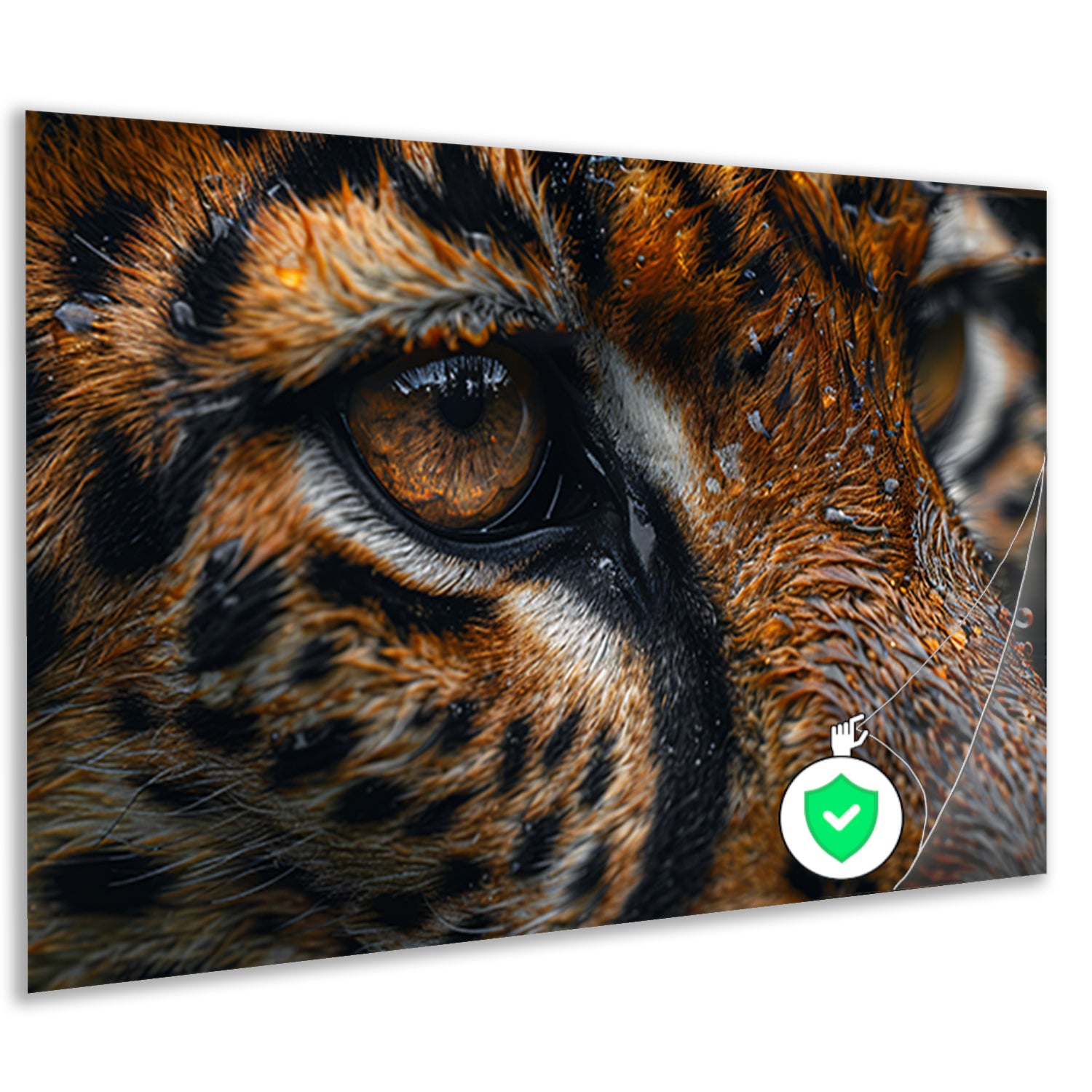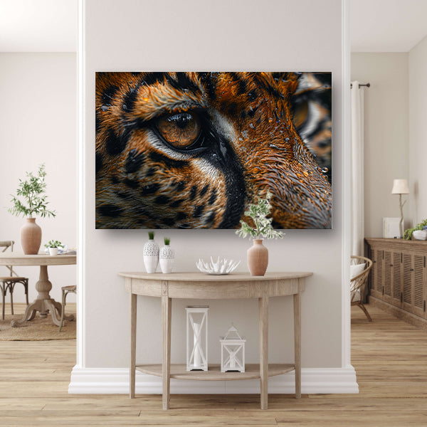 Gedetailleerde close-up van tijgeroog en vacht poster