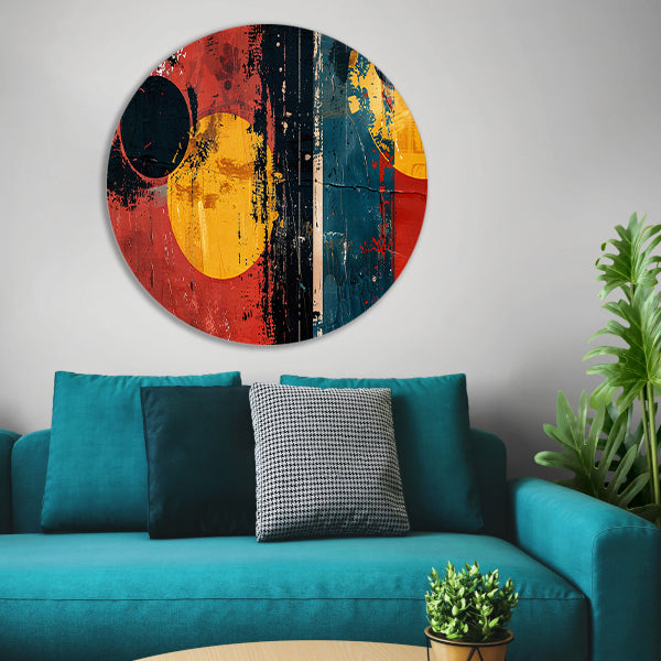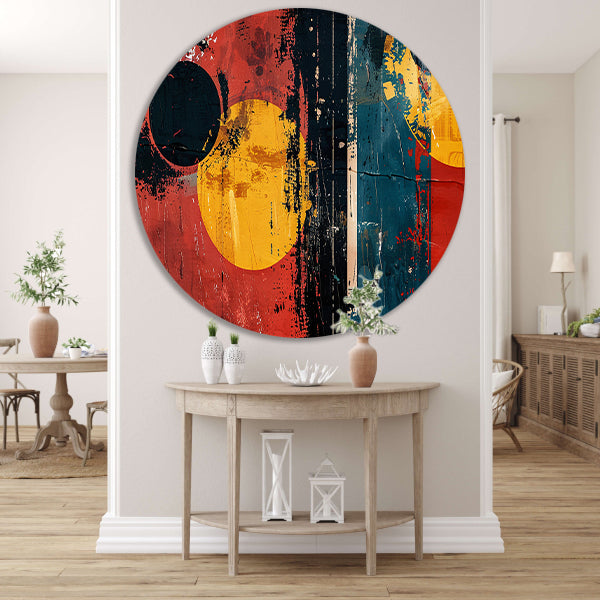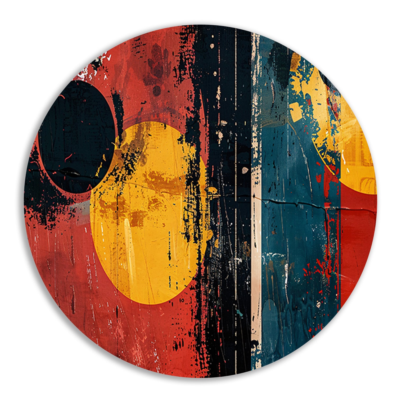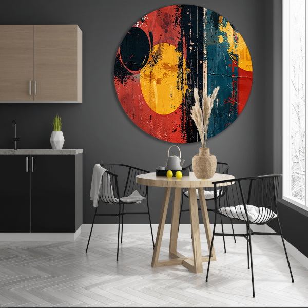 Gedurfde abstracte compositie met cirkels aluminium muurcirkel