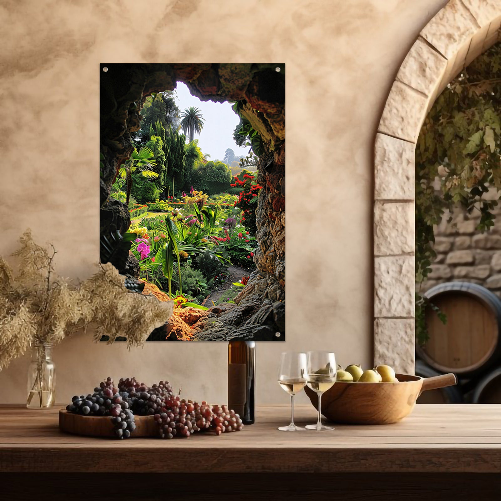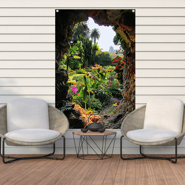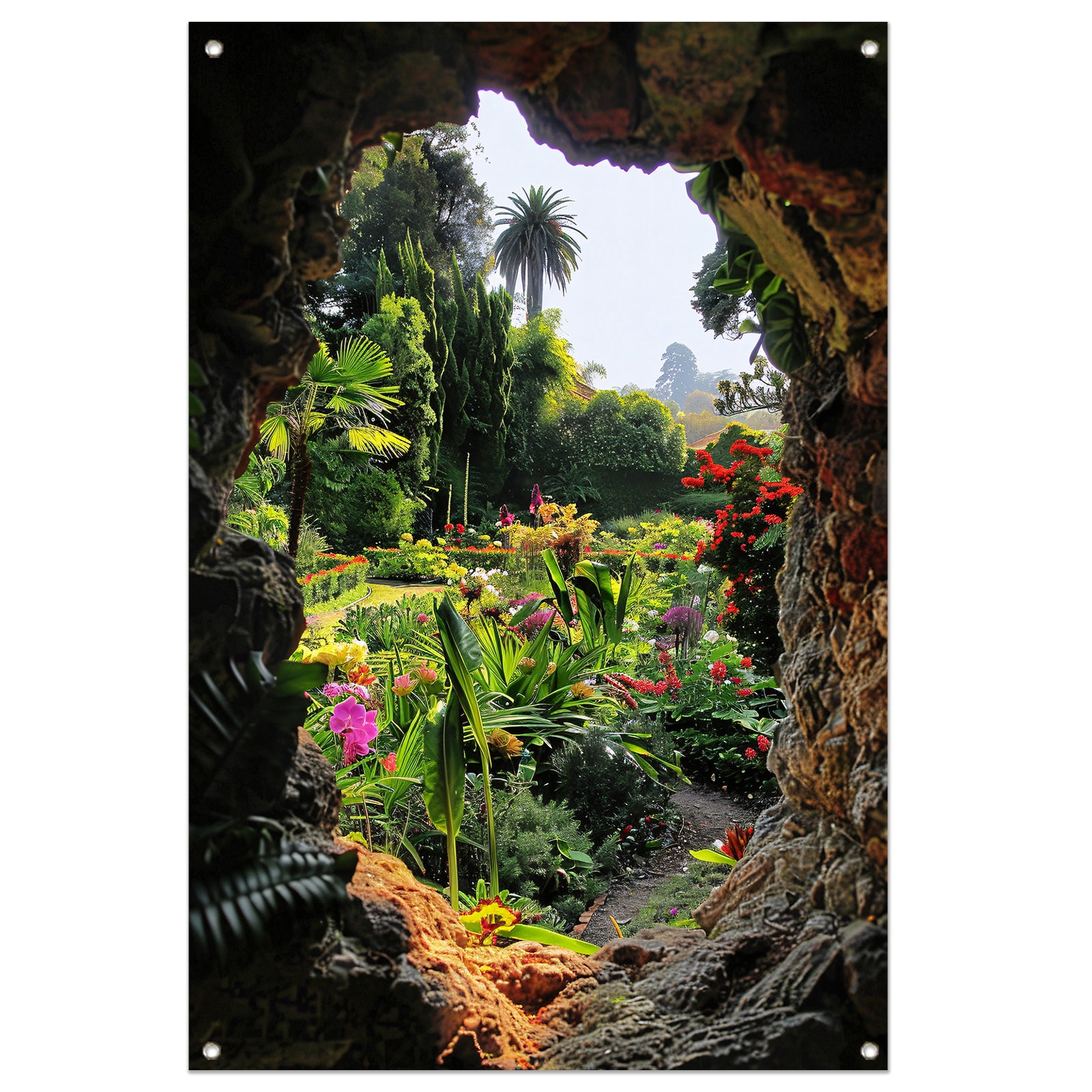 Geheime tuin in een kleurrijke grot tuinposter