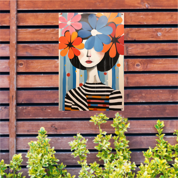De "Gekleurde Bloemen op Zwart-wit Strepen" tuinposter is verkrijgbaar in allerlei formaten, zodat je de perfecte maat kunt kiezen die aansluit bij jouw unieke behoeften en ruimte. Of je nu op zoek bent naar een klein formaat voor een intieme plek of een groot formaat om als blikvanger te dienen, wij hebben de juiste oplossing voor jou. Deze tuinposter is gemaakt van duurzame materialen die bestand zijn tegen de elementen, waardoor hij ideaal is voor buitengebruik.