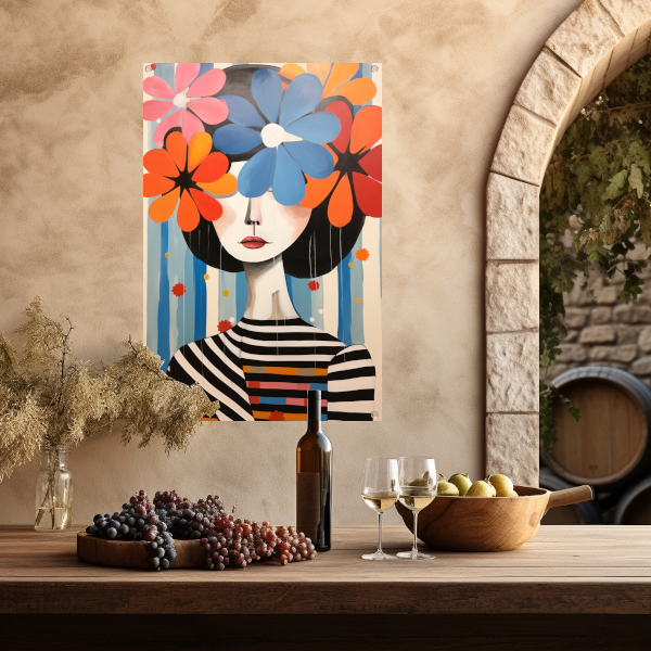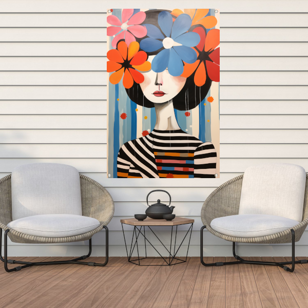 Met de snoepige ontwerpen en een kleurenschema dat zowel levendig als verfijnd is, past deze tuinposter perfect bij elke stijl – van modern en minimalistisch tot bohemian en artistiek. Hang deze poster aan je tuinhekje, of gebruik het als een eenvoudig decoratief element aan de muur van je buitenruimte. Wat je ook kiest, de "Gekleurde Bloemen op Zwart-wit Strepen" tuinposter zal helemaal tot zijn recht komen in jouw favoriete plek.