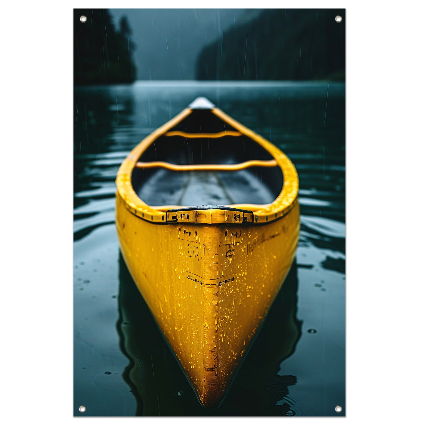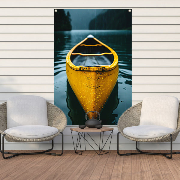 Gele Kano in de Regen op een Meer tuinposter