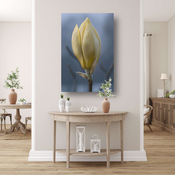 Gele Magnolia Bloemknop in Close-up canvas