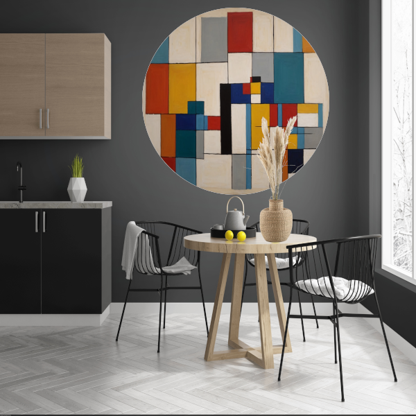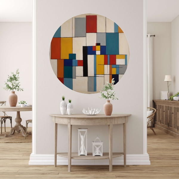 Geometric Harmony in Primary Colors aluminium muurcirkel