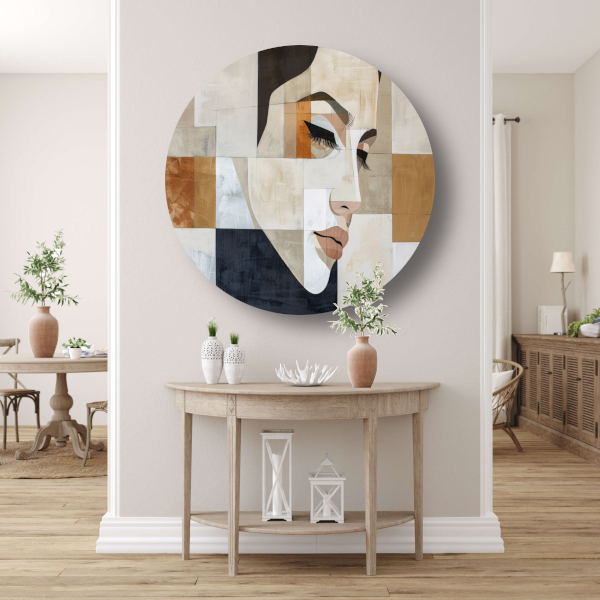Geometrisch Abstract Portret in Monochrome Tinten forex muurcirkel