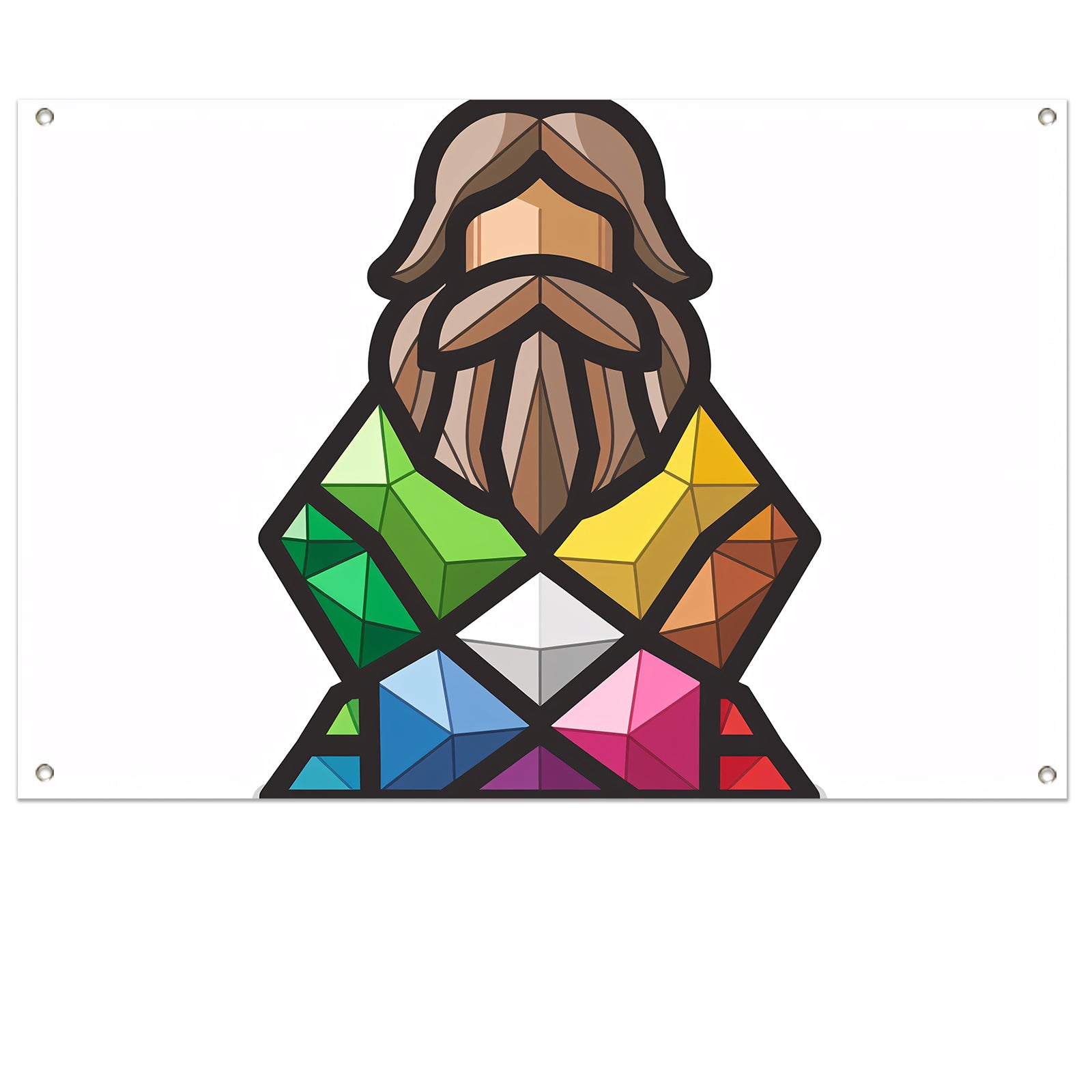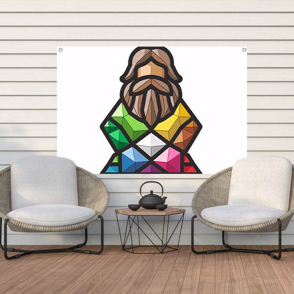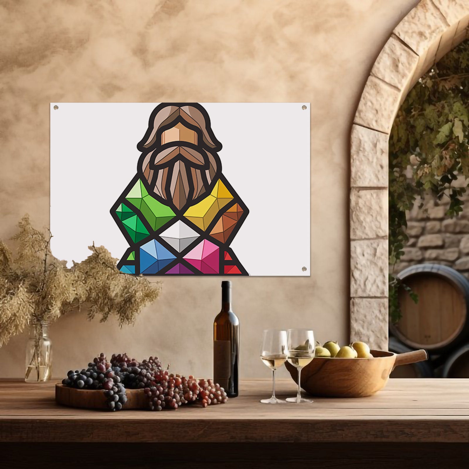 Geometrisch abstract portret met kleurrijke diamanten tuinposter
