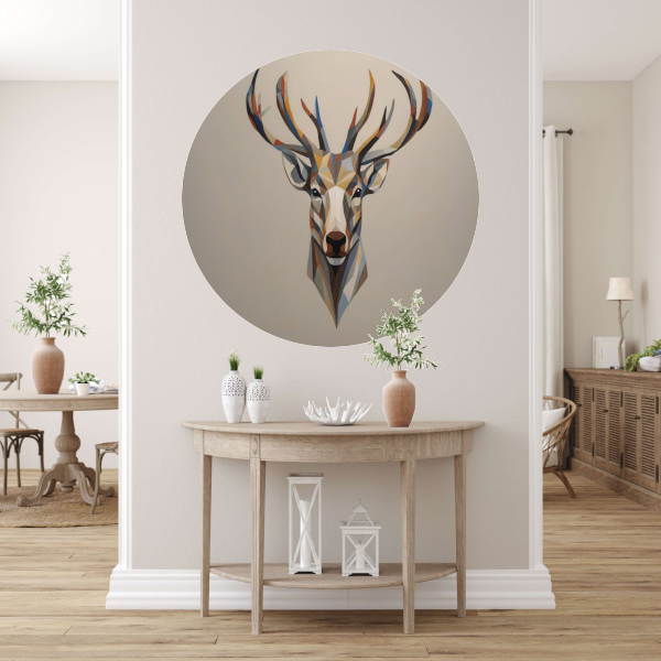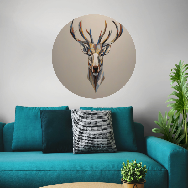 Geometrisch Minimalistisch Portret van een Hert aluminium muurcirkel
