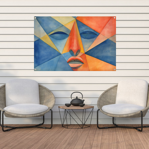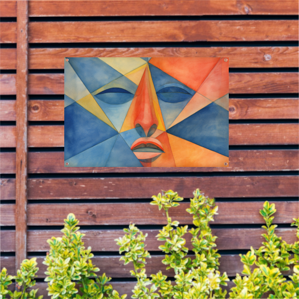 Deze prachtige tuinposter is een echte eyecatcher voor in jouw tuin. Het geometrische portret in lijnenspel is een uniek en modern thema dat zorgt voor een speels effect. De lijnen zijn strak en symmetrisch, waardoor het een rustige uitstraling heeft. De kleuren zijn subtiel en passen goed bij elkaar, waardoor het een harmonieus geheel vormt.